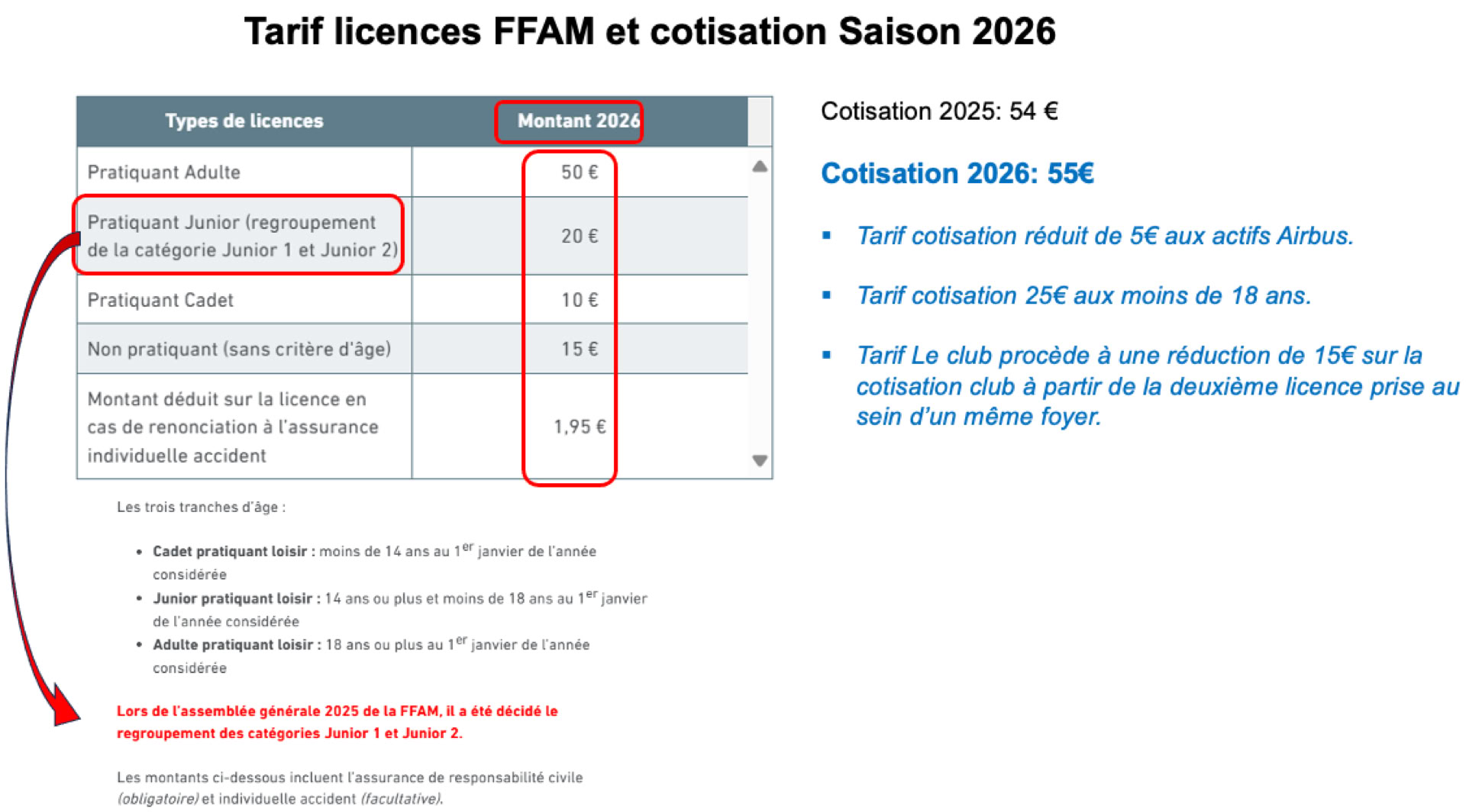 Les Tarifs pour l'année 2026
